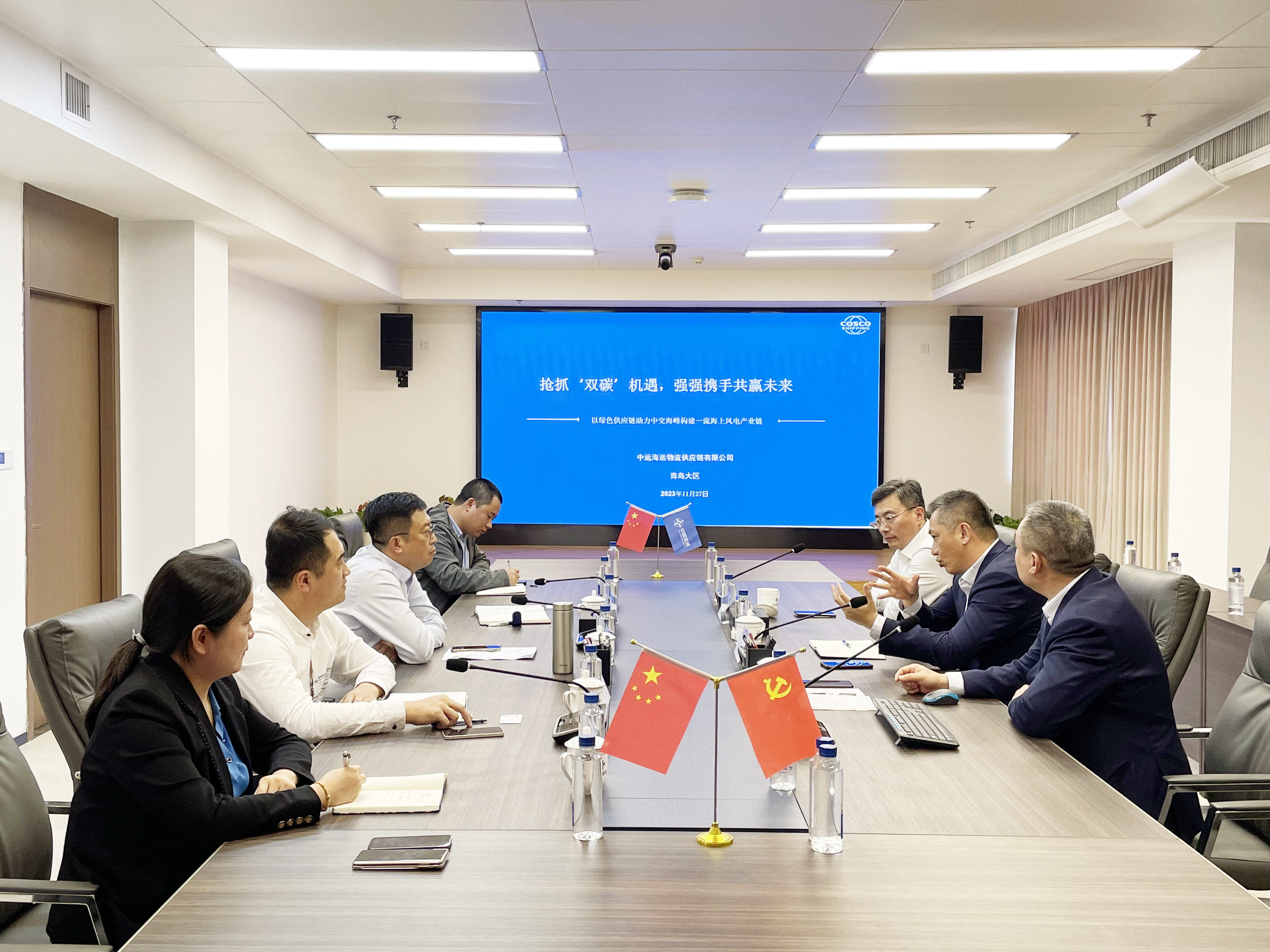 11月27日,2007so太阳集团副总经理赵龙在福州仓山科技园办公大楼会见了中远海运物流供应链有限公司青岛大区总经理黄春锋,双方就深化合作进行座谈交流。