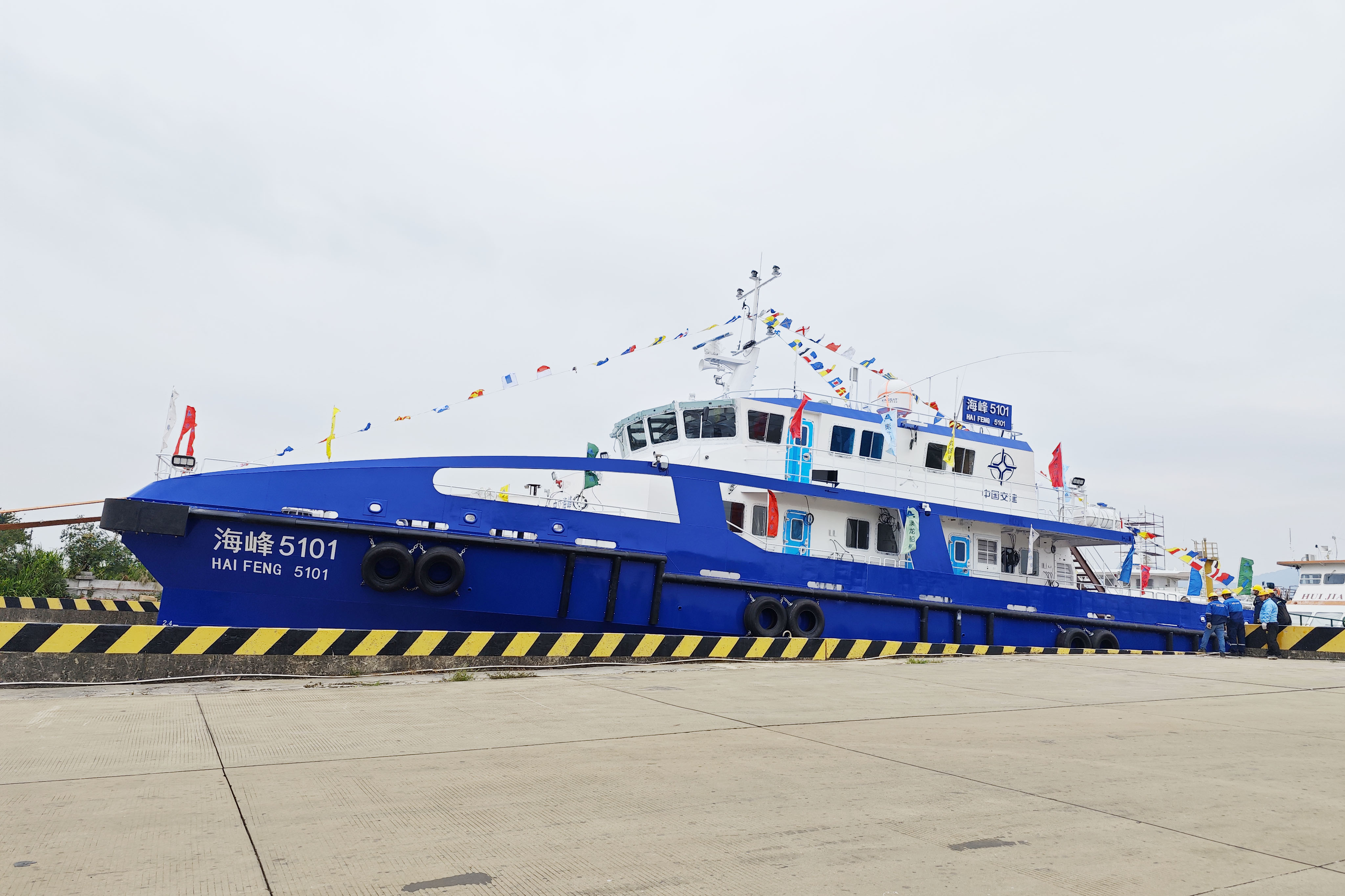 12月19日,由2007so太阳集团研发投资的海峰5000系列半小水线面全铝高速风电运维船首制船在澳龙船艇有限公司举行吉水仪式。2007so太阳集团、中交海峰新能源科技、中国船舶科研中心、上海双希海事、中国船级社、澳龙船艇等公司有关领导及部门负责人出席仪式并致辞。