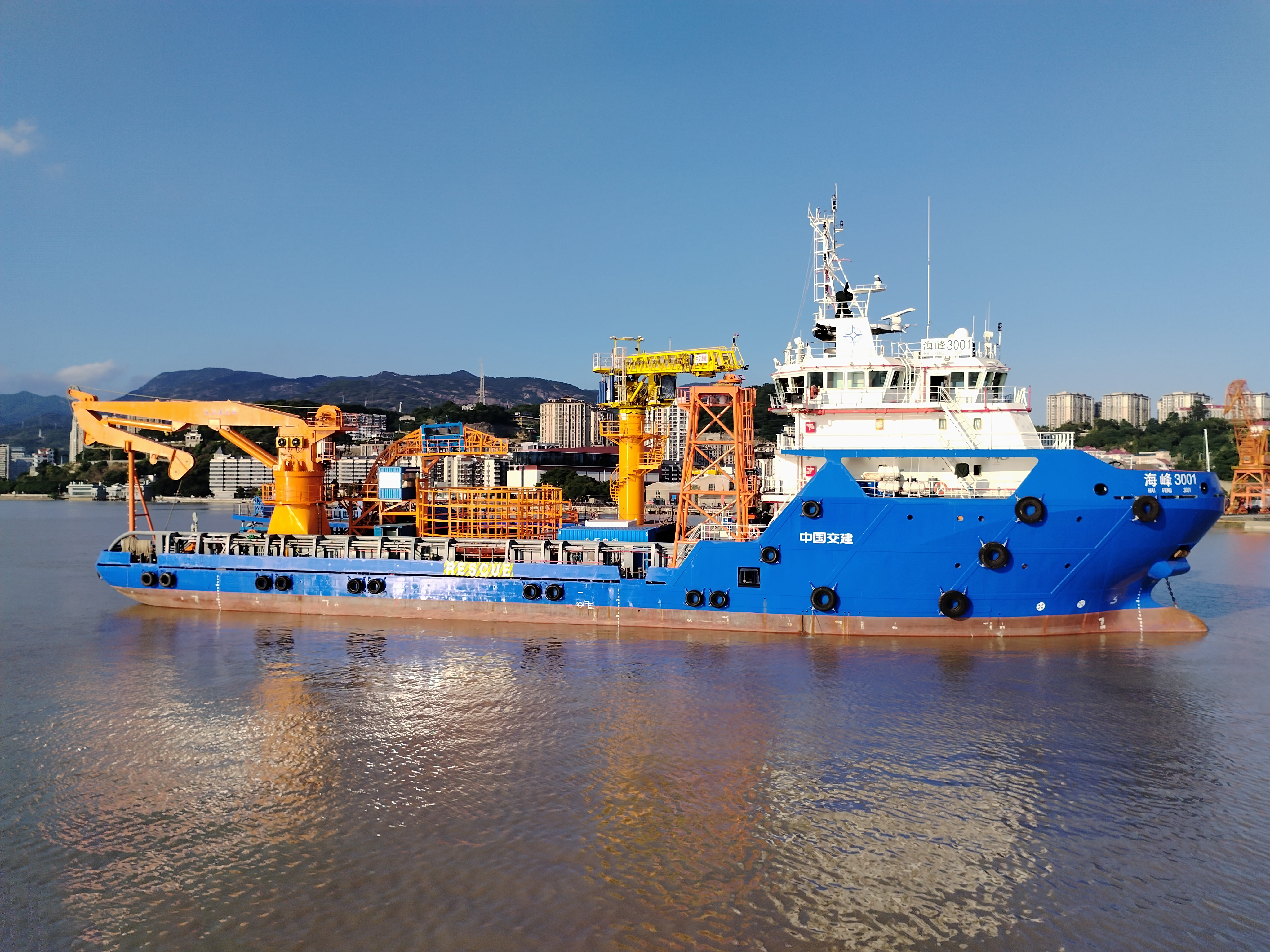 该项目作业地处琼州海峡附近,施工海域存在海流流速高、水下能见度差、连续阴雨等恶劣因素,同时面临工期紧张、工艺复杂等重重考验。自接到任务后,公司第一时间成立项目组,科学组织,争分夺秒,编制切实可行的施工方案和应急响应措施;组织各方资源,确保施工人员和作业物资等“跑步”进场;调度运维母船“海峰3001”等先进装备进场,全力保障项目有序推进。