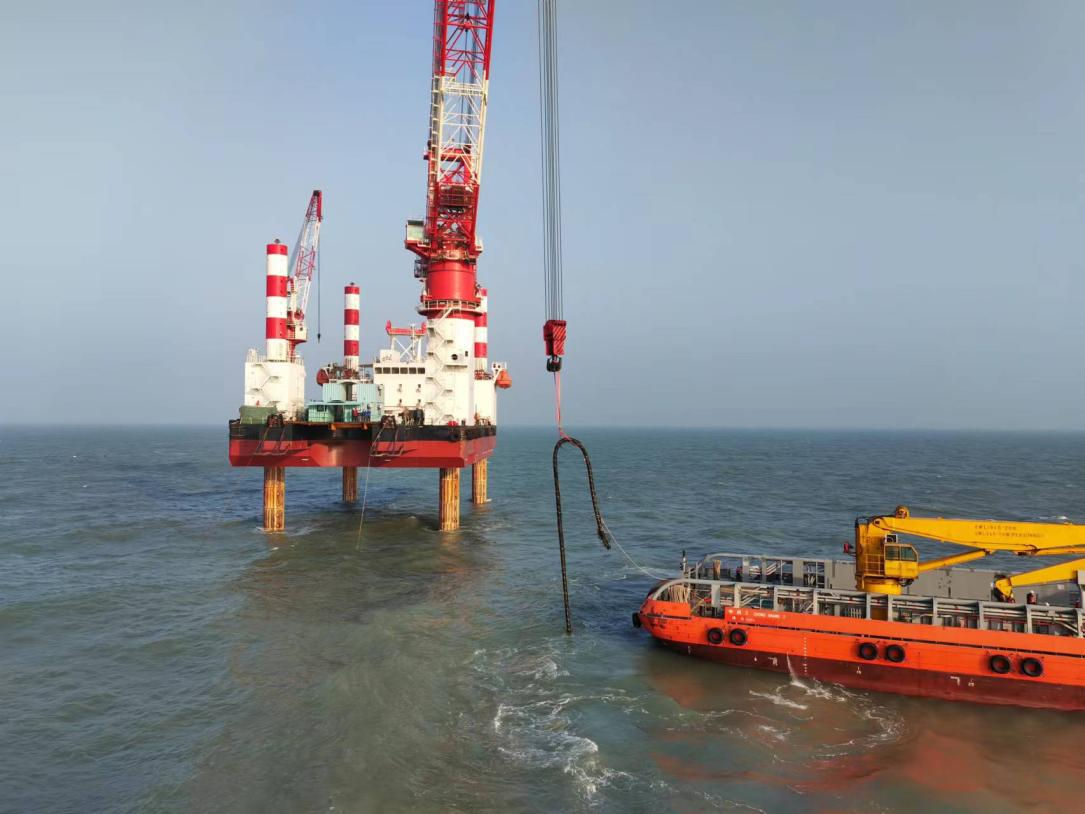 (2)基于“小型自升式平台船+PSV船”海缆维修技术为了克服冬季季风期施工窗口期短,无法连续进行施工的难题,公司创新性的提出了小型平台船和PSV船相互配合的海缆修复工艺。PSV船具有全回转推进,耐波性好,靠泊能力强,抗风浪强等优点,能够精确定位和移位,自升式平台船作为海上接头平台,保证了稳定的作业平台,不受风浪影响。该工艺已在福建多个风场成功应用,最快可在10天内完成海缆修复,减少清洁能源损失。