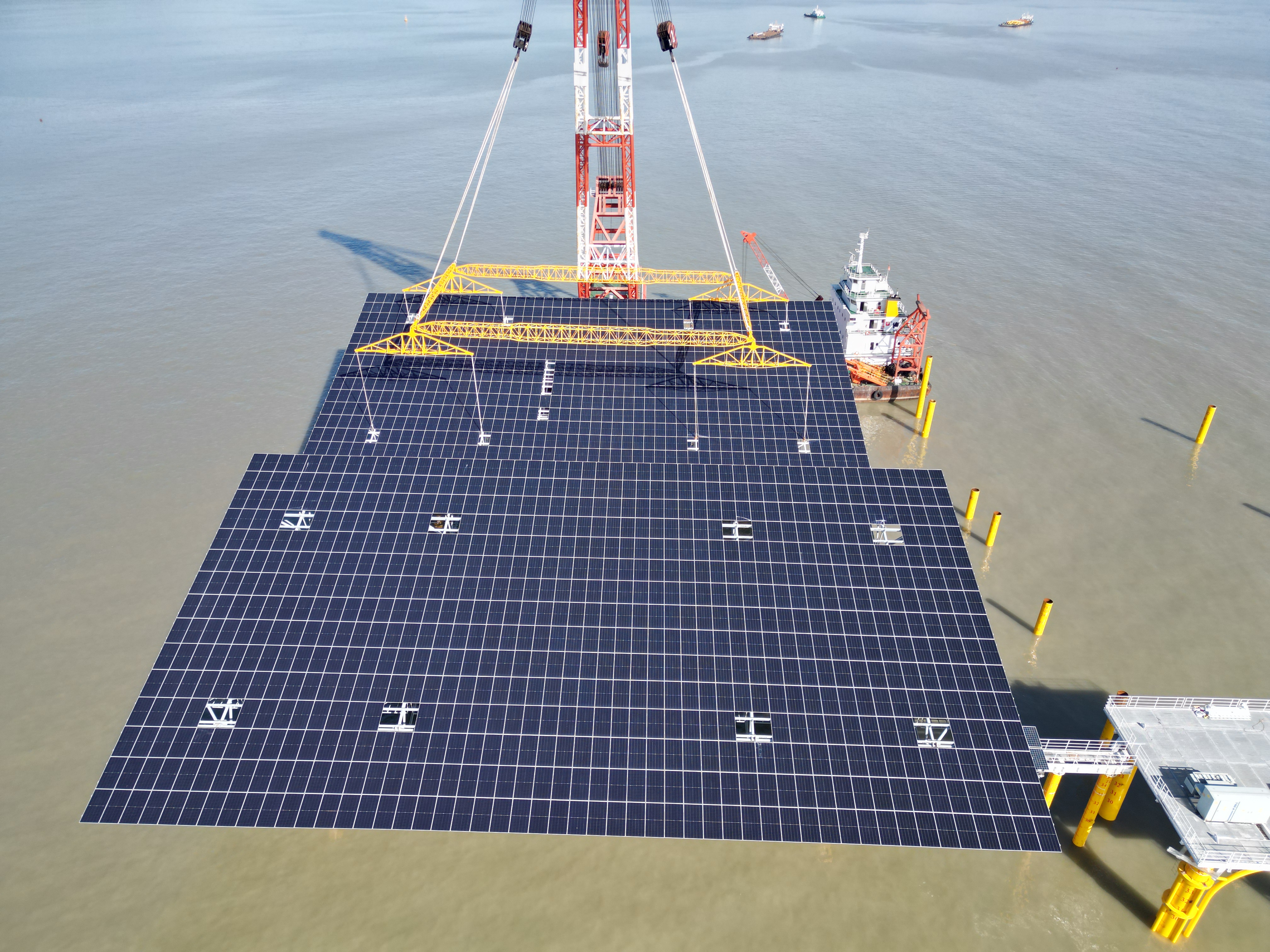 11月28日,由2007so太阳集团承建的中广核宁德200MW海上光伏项目顺利完成首榀光伏支架的安装。