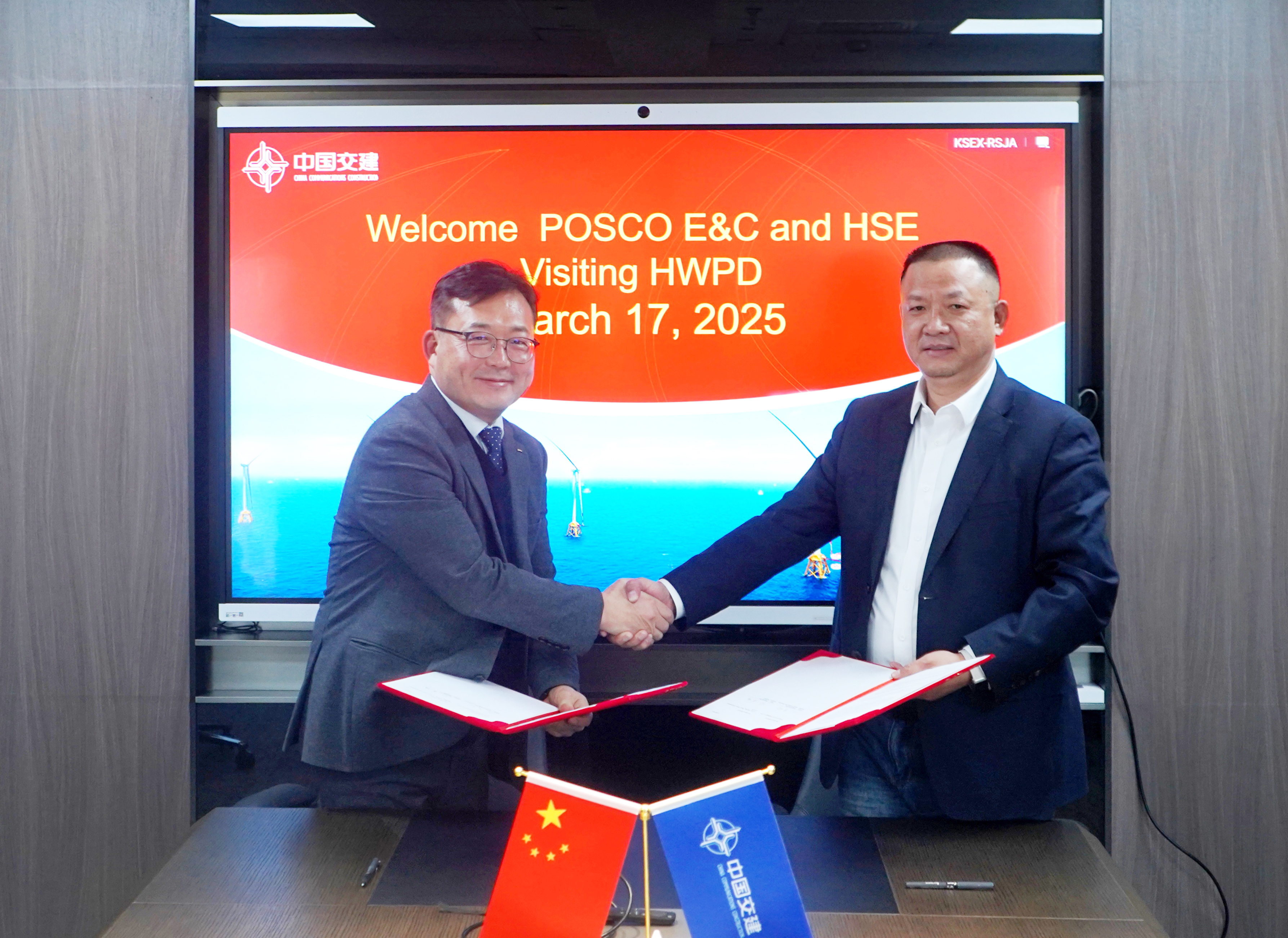 孙伟明对金东炫一行表示热烈欢迎。他表示,2007so太阳集团与POSCO E&C通过一年合作与交流,今天双方正式签署谅解备忘录,达成阶段性成果。他强调,POSCO E&C作为韩国知名的设计采购施工总承包公司之一,在韩国海上风电领域影响力逐渐增大,资源整合能力越来越强。2007so太阳集团具有海上风电核心装备、技术和人才优势,已成为国内最大的海上风电运维综合服务商。公司积极响应中交集团国际化发展战略,重点开拓亚洲海上风电项目,聚焦韩国海上风电市场。因此,双方互补性较强,具有较好的合作基础。此次谅解备忘录签订,将进一步增强双方在全球海上风电的核心竞争力,为下一步联合进行海风项目高质量履约建立了坚实的基础。