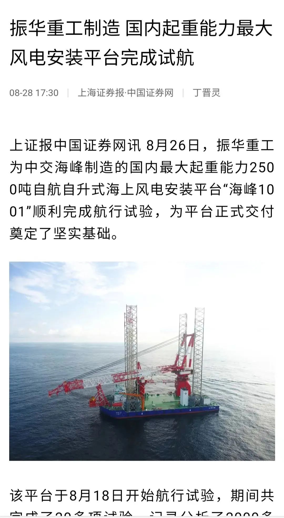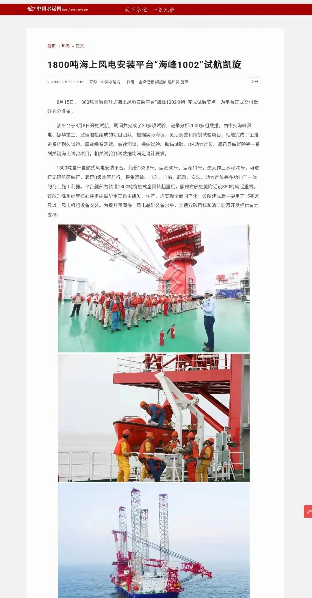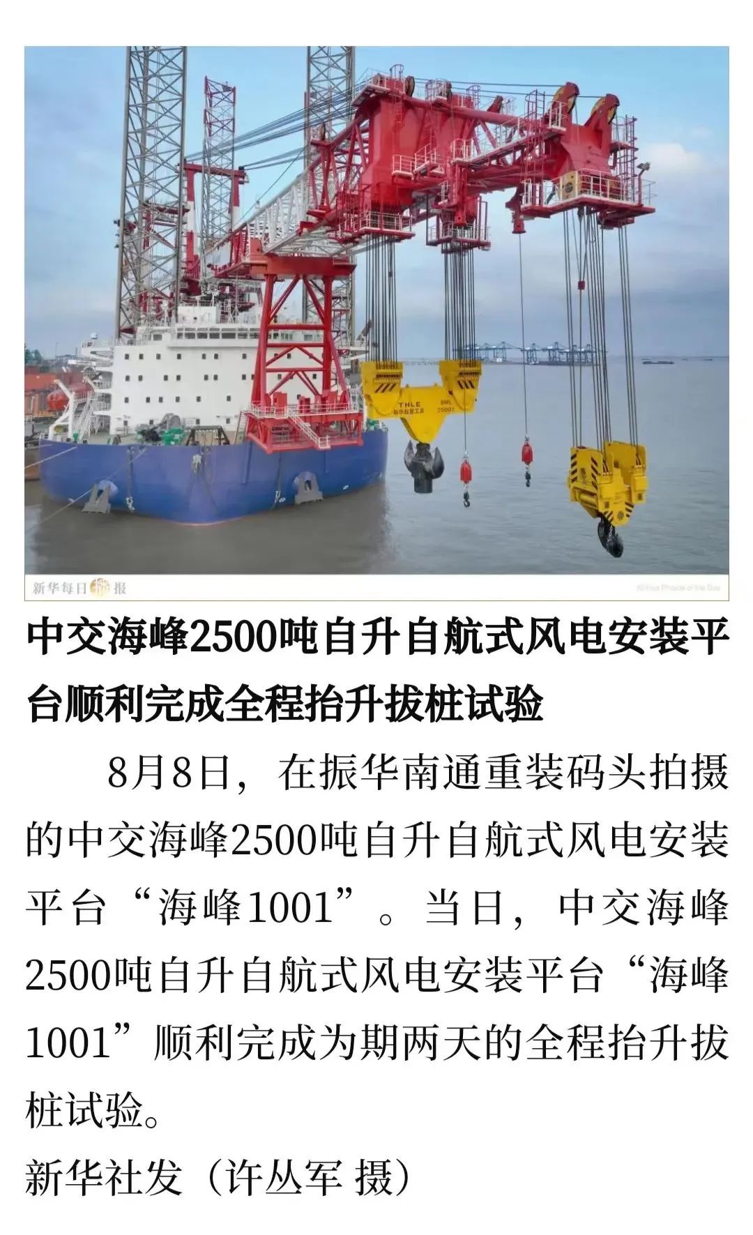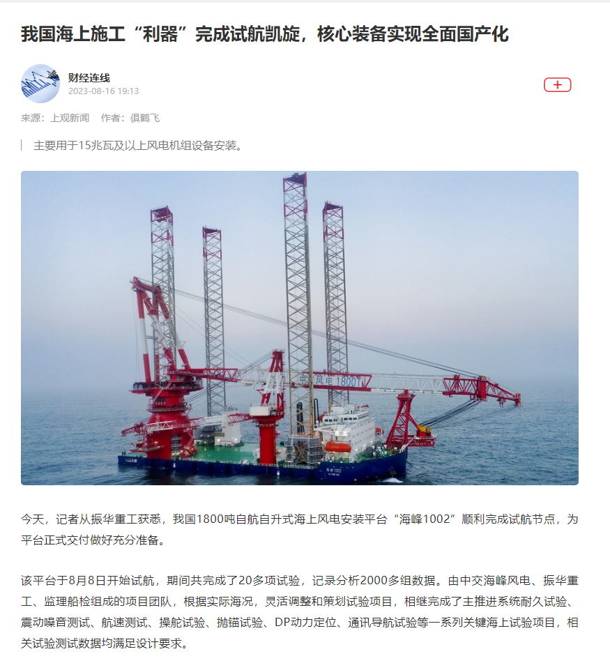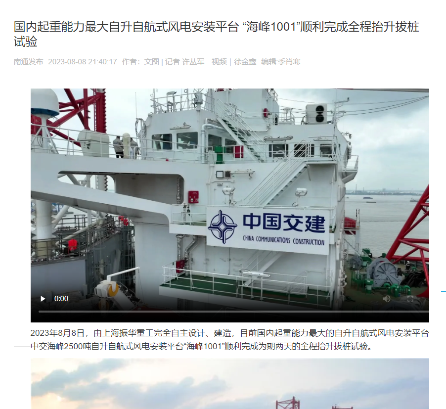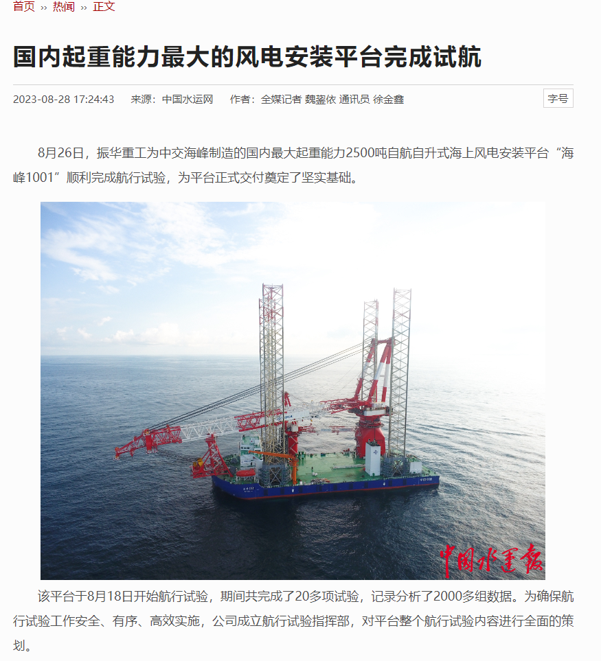 国内首艘2500吨级第四代海上风电安装平台
