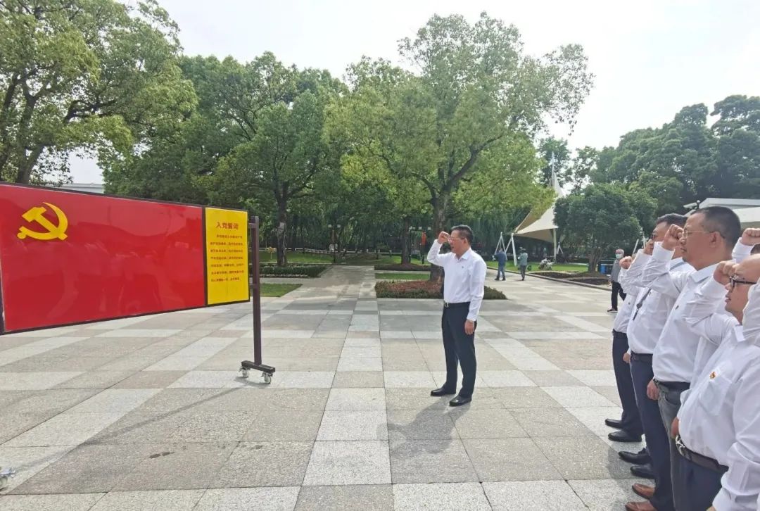 到达纪念馆伊始,由公司党委书记、董事长季振祥带领党员们进行入党宣誓,右拳高擎,神情庄重,面对鲜红的党旗郑重宣誓,全体党员重温入党誓词,回顾入党宣誓时的庄严承诺和坚定决心。